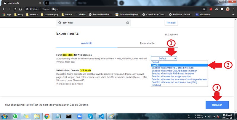 How to Enable Normal Dark mode which is supported by chrome