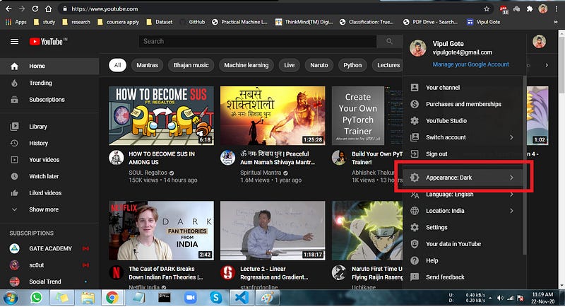 As you can see in the above image. There's another way of enabling dark mode is with following steps with i have listed down.